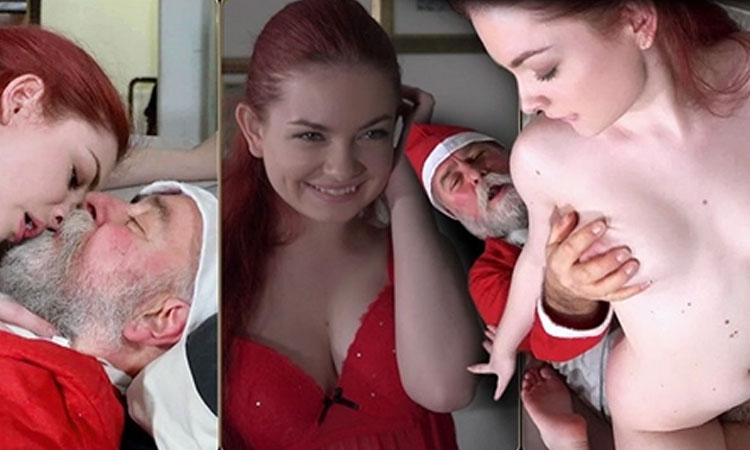 老少欢-圣诞老人操了一个漂亮的小红发女郎并射在她的嘴巴里